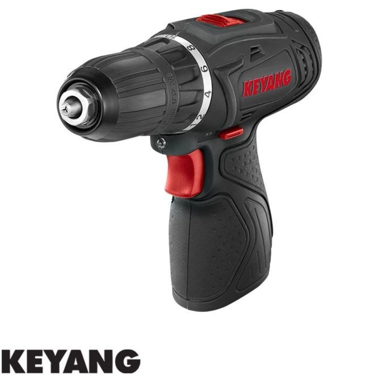10.8 V - 1.5 Ah Li-Ion, Koppel: 30Nm, Opname: 10mm, 2 versnellingen, 18 momentinstellingen, Slipkoppeling, Ledverlichting, Accuspanningsindicator, Merk: Keyang