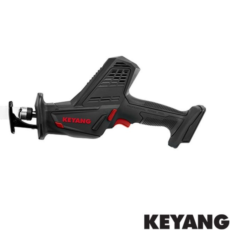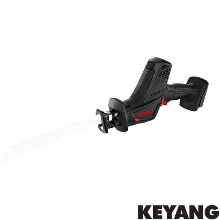 Keyang RS18LO Accu reciprozaag voor allround werkzaamheden. De machine beschikt over een uitstekende balans van het gewicht door de accupositie. Voorzien van een ergonomische handgreep, ledverlichting, snelwisselsysteem voor zaagbladen en verstelbare zool.
