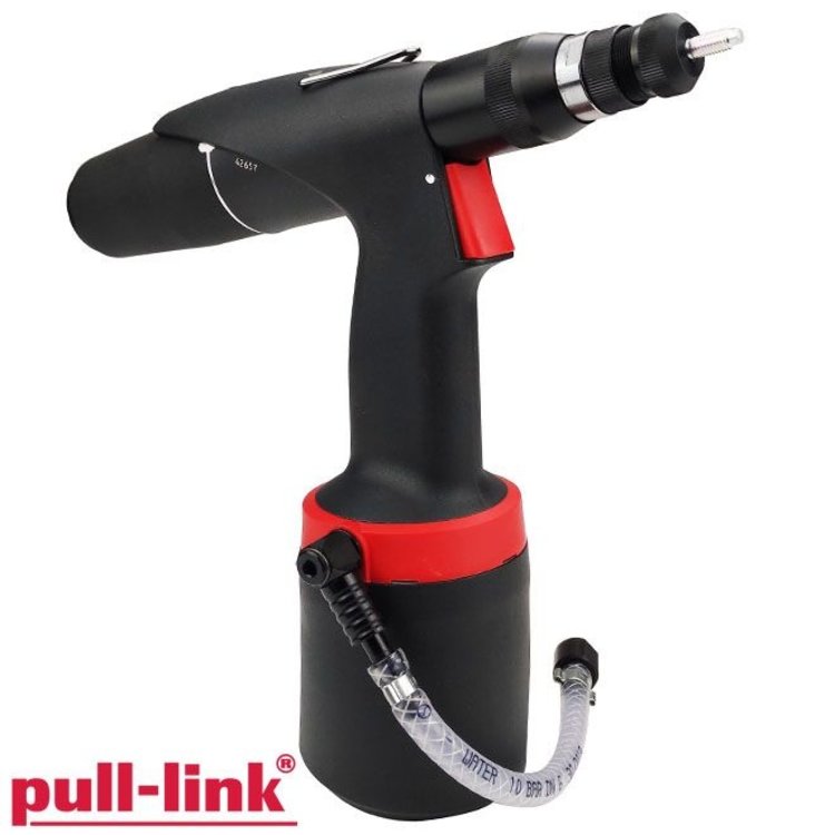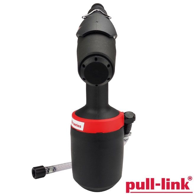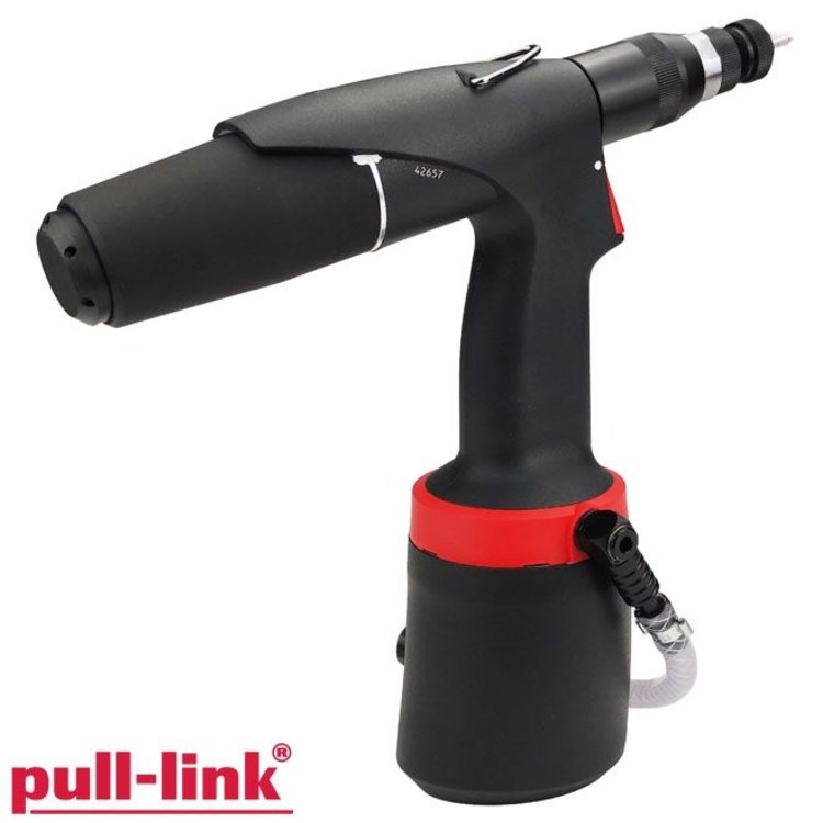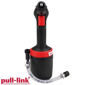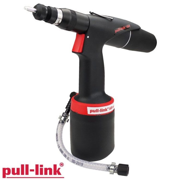 Lucht blindklinkmoertang voor blindklinkmoeren van M3, M4, M5, M6, M8, M10, M12 (M12 alleen aluminium en staal). De Pull-link AS-4 werkt met een op slag gestuurd systeem en is geschikt voor plaatsing van blindklinkmoeren in materialen met een constante materiaaldikte. Dit komt doordat de tang een blindklinkmoer klemt tussen het materiaal met een ingestelde werkslag. Uiteraard kan er met diverse materiaaldiktes worden gewerkt, maar dan dient de tang bij elke plaatdikte juist te worden ingesteld. De blindklinkmoertang werkt volledig automatisch.