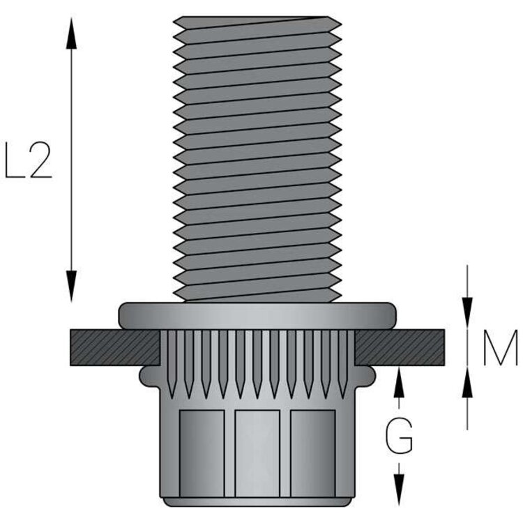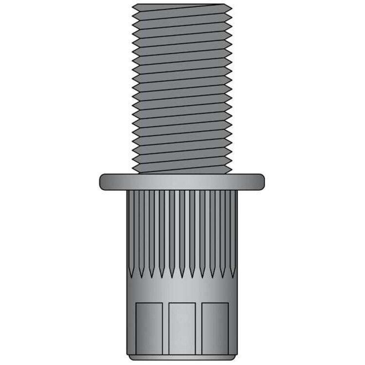 Stalen blindklinkbouten M6 met cilindrische kop en gekartelde schacht. Dit type blindklinkbout wordt over het algemeen gebruikt bij situaties waarbij de kop uit mag steken boven het werkstuk. De gekartelde schacht zorgt ervoor dat de blindklinkmoer zich vasttrekt in het materiaal, wat meedraaien voorkomt. Met een blindklinkbout brengt u eenvoudig schroefdraad aan in plaatwerk, kokerprofielen en buisprofielen. Blindklinkbouten kunnen worden geplaatst met een accu blindklinkbouttang, pneumatische blindklinkbouttang of een handmatige blindklinkbouttang. Bij het selecteren van de juiste blindklinkbout moet de plaatdikte of wandikte worden opgemeten van het werkstuk. De gemeten dikte moet binnen het klembereik vallen van de blindklinkbout.