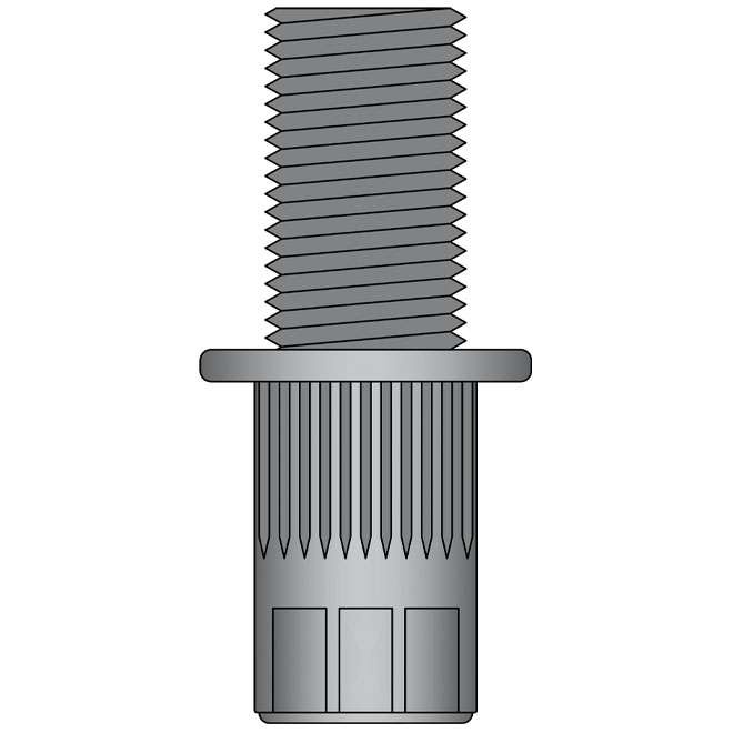 Stalen blindklinkbouten M6 met cilindrische kop en gekartelde schacht. Dit type blindklinkbout wordt over het algemeen gebruikt bij situaties waarbij de kop uit mag steken boven het werkstuk. De gekartelde schacht zorgt ervoor dat de blindklinkmoer zich vasttrekt in het materiaal, wat meedraaien voorkomt. Met een blindklinkbout brengt u eenvoudig schroefdraad aan in plaatwerk, kokerprofielen en buisprofielen. Blindklinkbouten kunnen worden geplaatst met een accu blindklinkbouttang, pneumatische blindklinkbouttang of een handmatige blindklinkbouttang. Bij het selecteren van de juiste blindklinkbout moet de plaatdikte of wandikte worden opgemeten van het werkstuk. De gemeten dikte moet binnen het klembereik vallen van de blindklinkbout.