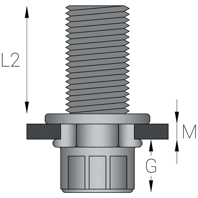 Stalen blindklinkbouten M6 zeskant met cilindrische kop en gekartelde schacht. Dit type blindklinkbout wordt over het algemeen gebruikt bij situaties waarbij de kop uit mag steken boven het werkstuk. De zeskant schacht zorgt ervoor dat de blindklinkmoer niet kan meedraaien in het materiaal. Met een blindklinkbout brengt u eenvoudig schroefdraad aan in plaatwerk, kokerprofielen en buisprofielen. Blindklinkbouten kunnen worden geplaatst met een accu blindklinkbouttang, pneumatische blindklinkbouttang of een handmatige blindklinkbouttang. Bij het selecteren van de juiste blindklinkbout moet de plaatdikte of wandikte worden opgemeten van het werkstuk. De gemeten dikte moet binnen het klembereik vallen van de blindklinkbout.
