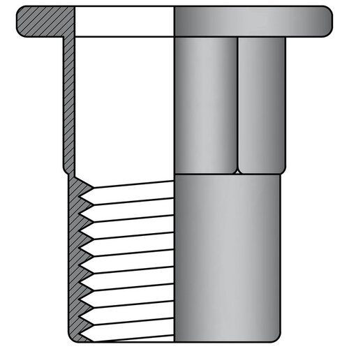 Dit type blindklinkmoer wordt toegepast als de kop mag uitsteken boven het werkstuk. Cilindrische blindklinkmoeren zijn leverbaar in staal en RVS. De body van de blindklinkmoer is half zeskant; dit voorkomt meedraaien.