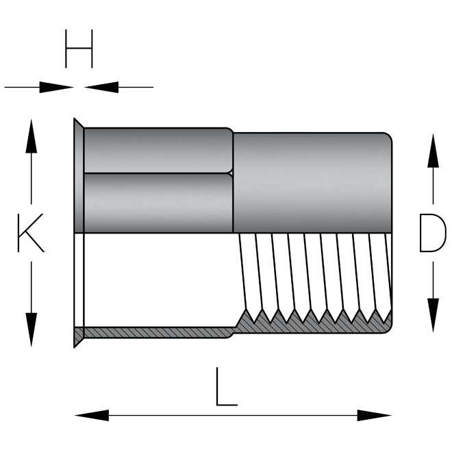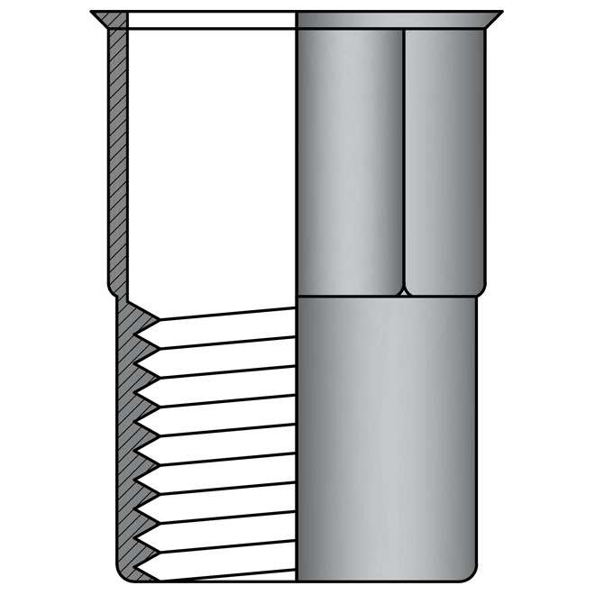 Type blindklinkmoer: Half zeskant gereduceerd verzonken kop