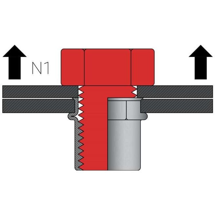 RVS A2 blindklinkmoeren M3 half zeskant met gereduceerd verzonken kop. Dit type blindklinkmoer wordt over het algemeen gebruikt bij situaties waarbij de kop niet mag uitsteken boven het werkstuk. Bij juiste plaatsing steekt de kop van de blindklinkmoer nagenoeg niet uit boven het materiaal. De zeskant schacht zorgt ervoor dat de blindklinkmoer niet kan meedraaien in het materiaal. Met een blindklinkmoer brengt u eenvoudig schroefdraad aan in plaatwerk, kokerprofielen en buisprofielen. Blindklinkmoeren kunnen worden geplaatst met een accu blindklinkmoertang, pneumatische blindklinkmoertang of een handmatige blindklinkmoertang. Bij het selecteren van de juiste blindklinkmoer moet de plaatdikte of wandikte worden opgemeten van het werkstuk. De gemeten dikte moet binnen het klembereik vallen van de blindklinkmoer.