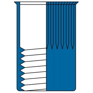 Stalen blindklinkmoeren M3 met gereduceerd verzonken kop en gekartelde schacht. Dit type blindklinkmoer wordt over het algemeen gebruikt bij situaties waarbij de kop niet mag uitsteken boven het werkstuk. Bij juiste plaatsing steekt de kop van de blindklinkmoer nagenoeg niet uit boven het materiaal. De gekartelde schacht zorgt ervoor dat de blindklinkmoer zich vasttrekt in het materiaal, wat meedraaien voorkomt. Met een blindklinkmoer brengt u eenvoudig schroefdraad aan in plaatwerk, kokerprofielen en buisprofielen. Blindklinkmoeren kunnen worden geplaatst met een accu blindklinkmoertang, pneumatische blindklinkmoertang of een handmatige blindklinkmoertang. Bij het selecteren van de juiste blindklinkmoer moet de plaatdikte of wandikte worden opgemeten van het werkstuk. De gemeten dikte moet binnen het klembereik vallen van de blindklinkmoer.
