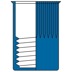Stalen blindklinkmoeren M4 gesloten met gereduceerd verzonken kop en gekartelde schacht. Dit type blindklinkmoer wordt over het algemeen gebruikt bij situaties waarbij de kop niet mag uitsteken boven het werkstuk. Bij juiste plaatsing steekt de kop van de blindklinkmoer nagenoeg niet uit boven het materiaal. De gekartelde schacht zorgt ervoor dat de blindklinkmoer zich vasttrekt in het materiaal, wat meedraaien voorkomt. Met een blindklinkmoer brengt u eenvoudig schroefdraad aan in plaatwerk, kokerprofielen en buisprofielen. Blindklinkmoeren kunnen worden geplaatst met een accu blindklinkmoertang, pneumatische blindklinkmoertang of een handmatige blindklinkmoertang. Bij het selecteren van de juiste blindklinkmoer moet de plaatdikte of wandikte worden opgemeten van het werkstuk. De gemeten dikte moet binnen het klembereik vallen van de blindklinkmoer.
