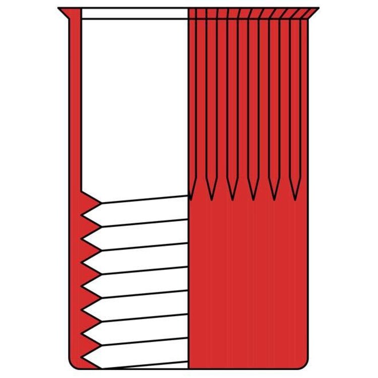 RVS A2 blindklinkmoeren M5 met gereduceerd verzonken kop en gekartelde schacht. Dit type blindklinkmoer wordt over het algemeen gebruikt bij situaties waarbij de kop niet mag uitsteken boven het werkstuk. Bij juiste plaatsing steekt de kop van de blindklinkmoer nagenoeg niet uit boven het materiaal. De gekartelde schacht zorgt ervoor dat de blindklinkmoer zich vasttrekt in het materiaal, wat meedraaien voorkomt. Met een blindklinkmoer brengt u eenvoudig schroefdraad aan in plaatwerk, kokerprofielen en buisprofielen. Blindklinkmoeren kunnen worden geplaatst met een accu blindklinkmoertang, pneumatische blindklinkmoertang of een handmatige blindklinkmoertang. Bij het selecteren van de juiste blindklinkmoer moet de plaatdikte of wandikte worden opgemeten van het werkstuk. De gemeten dikte moet binnen het klembereik vallen van de blindklinkmoer.