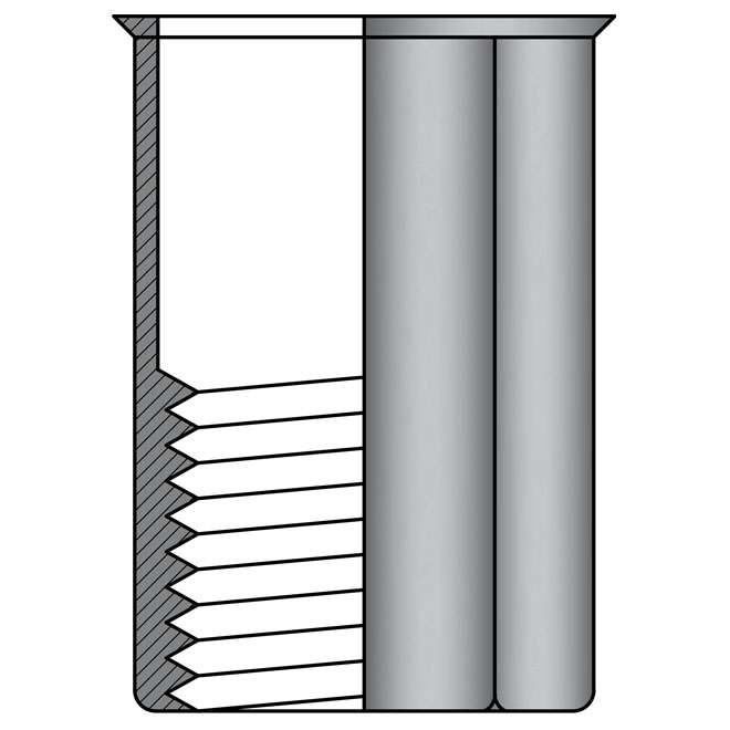 RVS A2 blindklinkmoeren M5 zeskant met gereduceerd verzonken kop. Dit type blindklinkmoer wordt over het algemeen gebruikt bij situaties waarbij de kop niet mag uitsteken boven het werkstuk. Bij juiste plaatsing steekt de kop van de blindklinkmoer nagenoeg niet uit boven het materiaal. De zeskant schacht zorgt ervoor dat de blindklinkmoer niet kan meedraaien in het materiaal. Met een blindklinkmoer brengt u eenvoudig schroefdraad aan in plaatwerk, kokerprofielen en buisprofielen. Blindklinkmoeren kunnen worden geplaatst met een accu blindklinkmoertang, pneumatische blindklinkmoertang of een handmatige blindklinkmoertang. Bij het selecteren van de juiste blindklinkmoer moet de plaatdikte of wandikte worden opgemeten van het werkstuk. De gemeten dikte moet binnen het klembereik vallen van de blindklinkmoer.