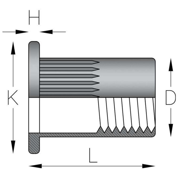 Stalen blindklinkmoeren M5 met cilindrische kop en gekartelde schacht. Dit type blindklinkmoer wordt over het algemeen gebruikt bij situaties waarbij de kop uit mag steken boven het werkstuk. De gekartelde schacht zorgt ervoor dat de blindklinkmoer zich vasttrekt in het materiaal, wat meedraaien voorkomt. Met een blindklinkmoer brengt u eenvoudig schroefdraad aan in plaatwerk, kokerprofielen en buisprofielen. Blindklinkmoeren kunnen worden geplaatst met een accu blindklinkmoertang, pneumatische blindklinkmoertang of een handmatige blindklinkmoertang. Bij het selecteren van de juiste blindklinkmoer moet de plaatdikte of wandikte worden opgemeten van het werkstuk. De gemeten dikte moet binnen het klembereik vallen van de blindklinkmoer.
