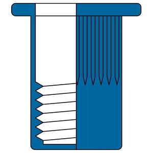 Stalen blindklinkmoeren M5 gesloten met cilindrische kop en gekartelde schacht. Dit type blindklinkmoer wordt over het algemeen gebruikt bij situaties waarbij de kop uit mag steken boven het werkstuk. De gekartelde schacht zorgt ervoor dat de blindklinkmoer zich vasttrekt in het materiaal, wat meedraaien voorkomt. Met een blindklinkmoer brengt u eenvoudig schroefdraad aan in plaatwerk, kokerprofielen en buisprofielen. Blindklinkmoeren kunnen worden geplaatst met een accu blindklinkmoertang, pneumatische blindklinkmoertang of een handmatige blindklinkmoertang. Bij het selecteren van de juiste blindklinkmoer moet de plaatdikte of wandikte worden opgemeten van het werkstuk. De gemeten dikte moet binnen het klembereik vallen van de blindklinkmoer.