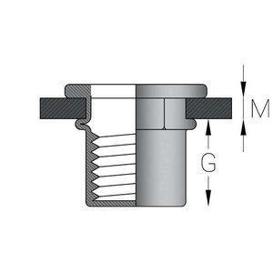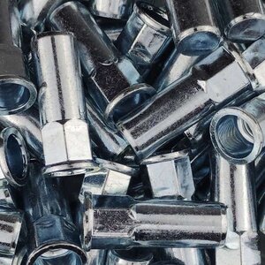 Stalen blindklinkmoeren M5 gesloten half zeskant met cilindrische kop. Dit type blindklinkmoer wordt over het algemeen gebruikt bij situaties waarbij de kop uit mag steken boven het werkstuk. De zeskant schacht zorgt ervoor dat de blindklinkmoer niet kan meedraaien in het materiaal. Met een blindklinkmoer brengt u eenvoudig schroefdraad aan in plaatwerk, kokerprofielen en buisprofielen. Blindklinkmoeren kunnen worden geplaatst met een accu blindklinkmoertang, pneumatische blindklinkmoertang of een handmatige blindklinkmoertang. Bij het selecteren van de juiste blindklinkmoer moet de plaatdikte of wandikte worden opgemeten van het werkstuk. De gemeten dikte moet binnen het klembereik vallen van de blindklinkmoer.