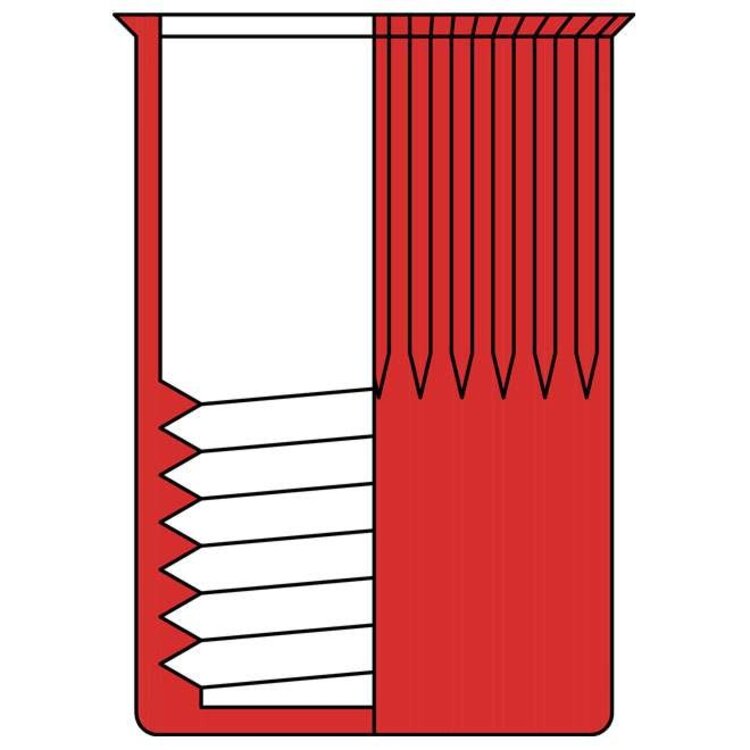 RVS A2 blindklinkmoeren M6 gesloten met gereduceerd verzonken kop en gekartelde schacht. Dit type blindklinkmoer wordt over het algemeen gebruikt bij situaties waarbij de kop niet mag uitsteken boven het werkstuk. Bij juiste plaatsing steekt de kop van de blindklinkmoer nagenoeg niet uit boven het materiaal. De gekartelde schacht zorgt ervoor dat de blindklinkmoer zich vasttrekt in het materiaal, wat meedraaien voorkomt. Met een blindklinkmoer brengt u eenvoudig schroefdraad aan in plaatwerk, kokerprofielen en buisprofielen. Blindklinkmoeren kunnen worden geplaatst met een accu blindklinkmoertang, pneumatische blindklinkmoertang of een handmatige blindklinkmoertang. Bij het selecteren van de juiste blindklinkmoer moet de plaatdikte of wandikte worden opgemeten van het werkstuk. De gemeten dikte moet binnen het klembereik vallen van de blindklinkmoer.