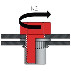 Stalen blindklinkmoeren M8 gesloten met cilindrische kop en gekartelde schacht. Dit type blindklinkmoer wordt over het algemeen gebruikt bij situaties waarbij de kop uit mag steken boven het werkstuk. De gekartelde schacht zorgt ervoor dat de blindklinkmoer zich vasttrekt in het materiaal, wat meedraaien voorkomt. Met een blindklinkmoer brengt u eenvoudig schroefdraad aan in plaatwerk, kokerprofielen en buisprofielen. Blindklinkmoeren kunnen worden geplaatst met een accu blindklinkmoertang, pneumatische blindklinkmoertang of een handmatige blindklinkmoertang. Bij het selecteren van de juiste blindklinkmoer moet de plaatdikte of wandikte worden opgemeten van het werkstuk. De gemeten dikte moet binnen het klembereik vallen van de blindklinkmoer.