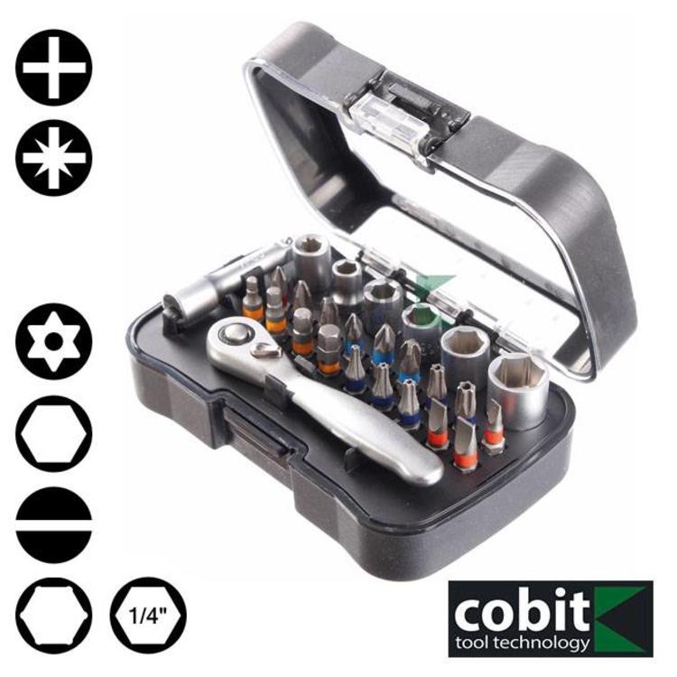 Torx met boring: 1x TX10; 1x TX15; 1x TX20; 1x TX25; 1x TX30
