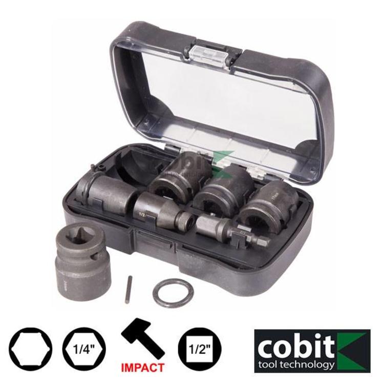 1x bitadapter 1/4'' 6-kant E6,3 op 1/2'' vierkant voor doppen