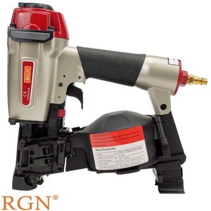 Pneumatische coil nailer / spijkerpistool. De machine kan draad aan elkaar gebonden coilnagels verwerken onder een hoek van 15 graden. Geschikt voor het bevestigen van bitumen en fiberglas dakbedekking, gevelbekleding, gaas en houten kratten. De spijkerpistolen zijn minder geschikt voor afwerken, omdat er soms kleine stukjes metaaldraad onder de spijker kunnen zitten. Wij kunnen tevens tegen scherpe prijzen coil nails leveren, neem contact met ons op voor meer informatie.
