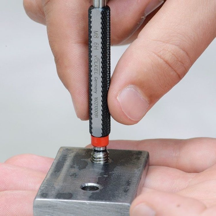 Schroefdraad kan gecontroleerd worden met een schroefdraadcaliber. Een schroefdraadcaliber bestaat uit 2 delen een GO (goedkeur) en NO-GO (afkeur, te herkennen aan de rode kleur). Voor het controleren van schroefdraad dient er als volgt gehandeld te worden. De GO-kant dient soepel en zonder haperingen of grote weerstand ingedraaid te kunnen worden. Vervolgens dient de NO-GO-kant maximaal 2 gangen in het gat gedraaid te kunnen worden. Lukt beide of 1 van deze 2 niet, dan is het schroefdraad niet in orde. Met de GO-kant voel je of het draad goed gesneden is met de juiste spoed. Met de NO-GO-kant voel je of het draad niet te groot of niet te klein is en dus aan de voorgeschreven tolerantie voldoet.