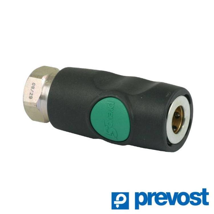De ESI07 snelkoppelingen zijn drukknop bediende perslucht veiligheidssnelkoppelingen. Door op de groene knop te drukken sluit de snelkoppeling de luchttoevoer af, de slang wordt ontlucht en vastgehouden in de snelkoppeling tot hij drukloos is. Met deze snelkoppeling heeft u een snelkoppeling die voldoet aan de ARBO wet en de veiligheidseisen van de ISO 4414. Het is op geen enkele wijze mogelijk de slang uit de snelkoppeling te nemen als er nog restdruk in zit.