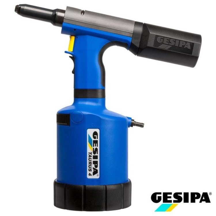 Lucht popnageltang voor het plaatsen van blindklinknagels. De Gesipa Taurus 3 beschikt over een slagvaste kunststof behuizing, pneumatisch aangedreven bekken en afzuiging voor te trekpen. De popnageltang wordt standaard geleverd met 3 neusstukken. Er zijn meer accessoires leverbaar zoals neusstukken voor andere maten en typen popnagels, vasthoudneusstukken, neusverlengstukken en haakse koppen.