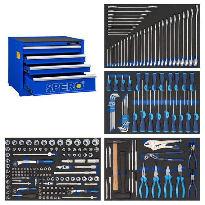 Gevulde topkast 229 delig. De gereedschappen liggen iets ruim in het foam wat uitname eenvoudig maakt. Mooie topbox voor in de serviceauto of voor op een gereedschapswagen om extra opbergruimte te creëren.