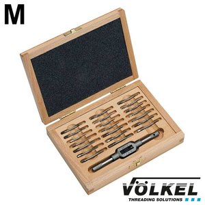 Schroefdraadsoort: ISO metrisch draad DIN 13, Handtappen: M 1 - 1.2 - 1.4 - 1.7 - 2.0 - 2.3 - 2.6, Materiaal: HSS-G, Verstelbaar wringijzer: No. 0, Merk: Völkel