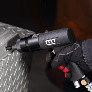 Lucht blindklinkmoertang geschikt voor blindklinkmoeren van M3, M4 en M5 (optioneel is er een M6 neusstuk leverbaar art. no.: 120043 dit neusstuk kan echter alleen worden gebruikt voor plaatsing van M6 blindklinkmoeren van aluminium en staal). De machine werkt volgens het spin-pull principe voor een razendsnelle verwerking.