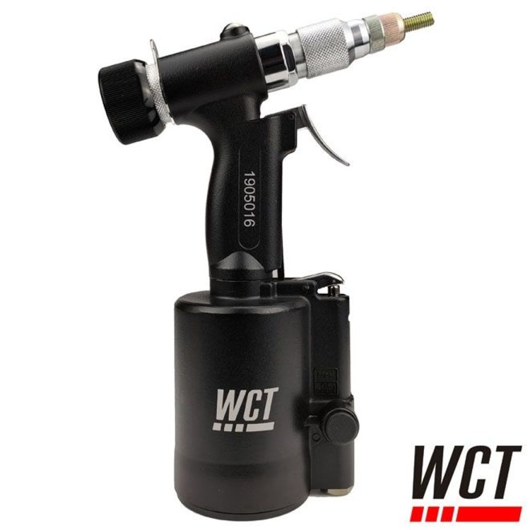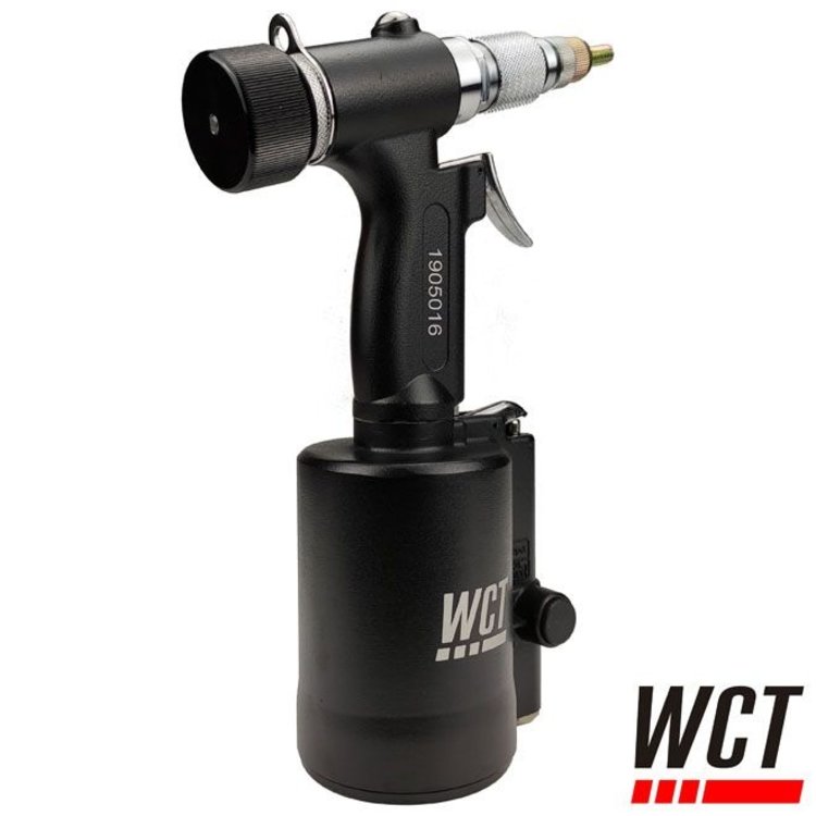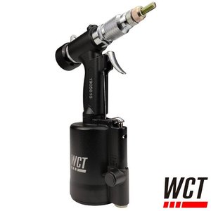 Lucht blindklinkmoertang geschikt voor blindklinkmoeren van M4, M5, M6, M8, M10. Met een slaglengte van 10mm en een tractiekracht van 16,18kN is het een echte allrounder voor in de werkplaats. Compleet geleverd met 5 neusstukken en plaatsingssleutels.