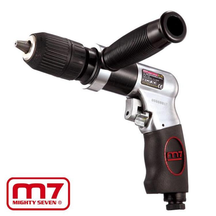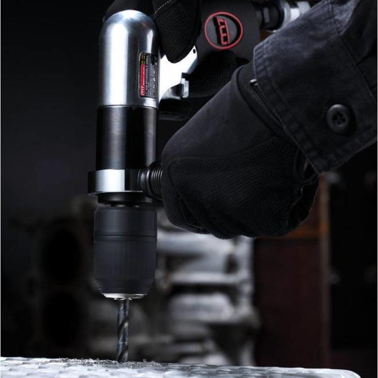 Lucht boormachine voor accessoires met een as tot 13mm. Voorzien van omschakelbare draairichting, snelspanboorkop en soft-grip handgreep.