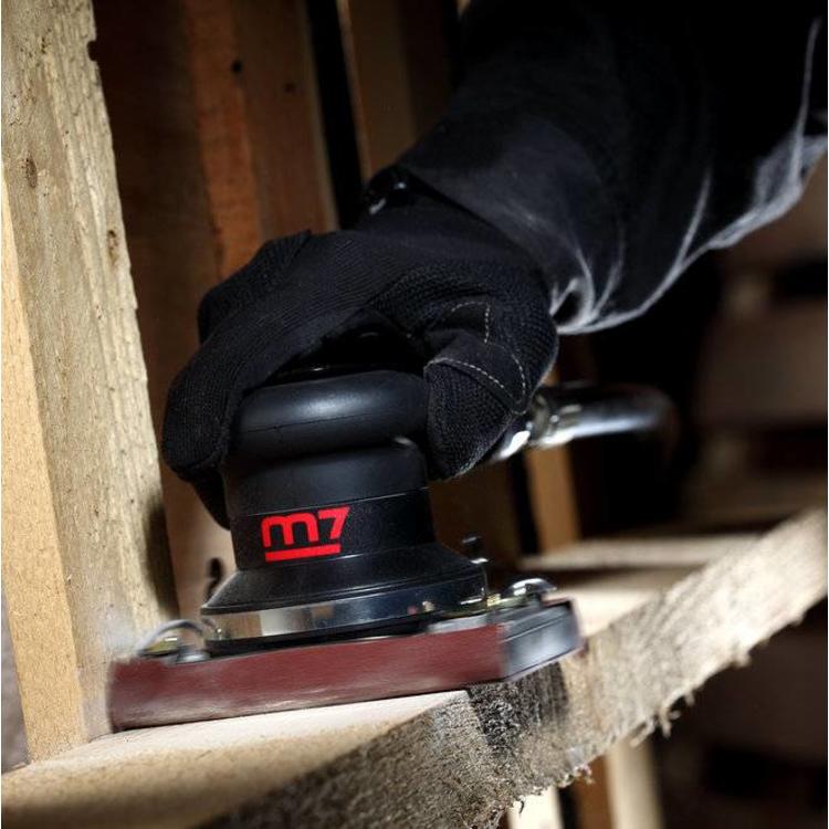 Pad afmetingen (mm): 100x110, Excentriciteit (mm): 2,5, Onbelast toerental (omw/min): 11.000, Totale lengte (mm): 130, Gewicht (kg): 0,91, Merk: Mighty Seven