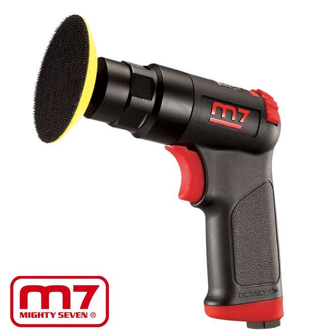 Lucht excentrisch roterende schuurmachine met een schuurpadhouder van 76mm (3''). Schuurschijven kunnen eenvoudig gemonteerd worden doormiddel van een velcro (klittenband) aansluiting. De schuurmachine wordt over het algemeen gebruikt om vlakken te schuren. Doordat de schijf roteert met excentriciteit wordt een zeer effen schuurresultaat behaald.