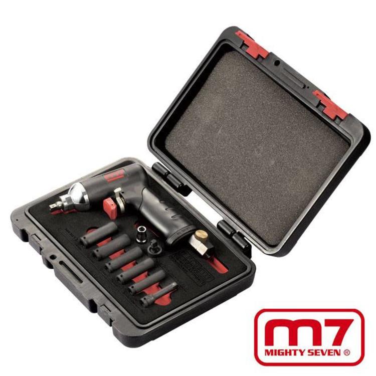 Luchtsleutel speciaal voor het verwerken van gloeibougies. Compleet geleverd in koffer met 1/4'' lange dop 8, 9, 10, 11, 12mm, verlengstuk 50mm en cardangewricht.