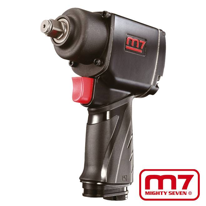 Luchtsleutel voorzien van een 3/8'' dopaansluiting. Compact model, body gemaakt van aluminium. Draairichting en krachtinstelling is op de achterzijde van de slagmoersleutel te regelen.