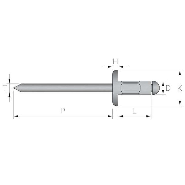 Multigrip popnagel 3.2 x 8.0mm met grote bolkop en een klembereik van 0.8 - 4.8mm. De body is gemaakt van aluminium en de trekpen van RVS A2. Multigrip popnagels worden gebruikt om zowel harde en zachte materialen aan elkaar te verbinden. De kop van de trekpen wordt mechanisch geborgd in de grote bolling achter het materiaal als de popnagel geplaatst is. Dit zorgt voor een goede drukverspreiding. Multigrip popnagels hebben een groter klembereik dan standaard popnagels. Blindklinknagels kunnen worden geplaatst met een accu popnageltang, pneumatische popnageltang of een handmatige popnageltang.