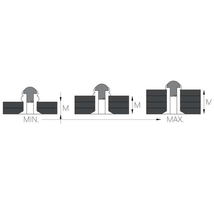 Multigrip popnagel 4.8 x 10.0mm met verzonken kop en een klembereik van 1.6 - 5.0mm. De body is gemaakt van aluminium en de trekpen van staal. Multigrip popnagels worden gebruikt om zowel harde en zachte materialen aan elkaar te verbinden. De kop van de trekpen wordt mechanisch geborgd in de grote bolling achter het materiaal als de popnagel geplaatst is. Dit zorgt voor een goede drukverspreiding. Multigrip popnagels hebben een groter klembereik dan standaard popnagels. Blindklinknagels kunnen worden geplaatst met een accu popnageltang, pneumatische popnageltang of een handmatige popnageltang.