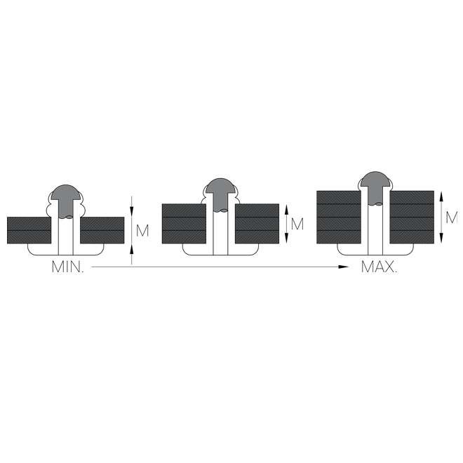 Multigrip popnagel 4.0 x 11.0mm met grote bolkop en een klembereik van 2.5 - 7.5mm. De body is gemaakt van aluminium en de trekpen van staal. Multigrip popnagels worden gebruikt om zowel harde en zachte materialen aan elkaar te verbinden. De kop van de trekpen wordt mechanisch geborgd in de grote bolling achter het materiaal als de popnagel geplaatst is. Dit zorgt voor een goede drukverspreiding. Multigrip popnagels hebben een groter klembereik dan standaard popnagels. Blindklinknagels kunnen worden geplaatst met een accu popnageltang, pneumatische popnageltang of een handmatige popnageltang.