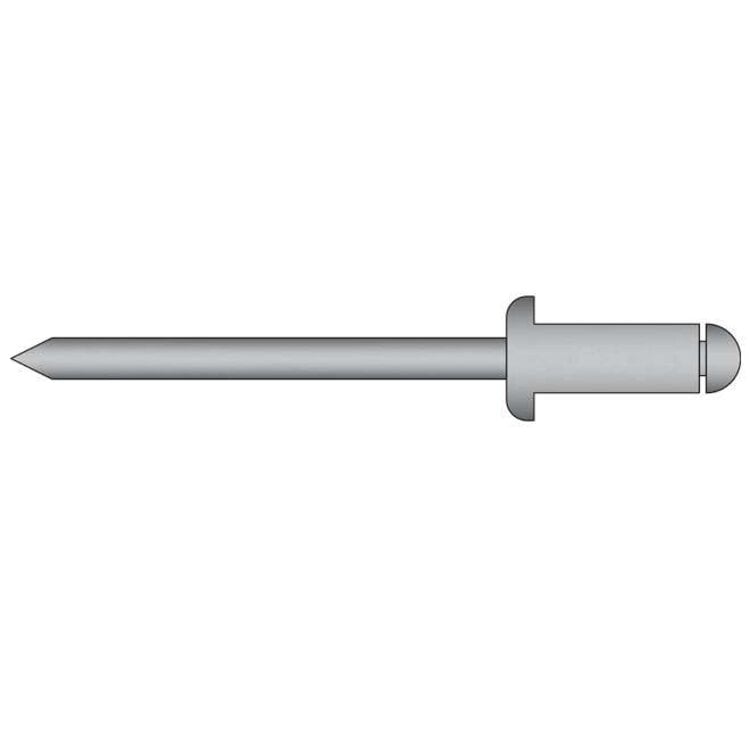 Popnagel 5.0 x 12.0mm met bolkop en een klembereik van 6.0 - 8.0mm. De body is gemaakt van aluminium en de trekpen van RVS A2. Popnagels worden algemeen gebruikt om bijvoorbeeld plaatmaterialen aan elkaar te bevestigingen. Door de trekpen aan te trekken wordt de body opgerekt. Vervolgens breekt de trekpen af bij het bereiken van een bepaalde aantrekkracht. Het resultaat is een sterke mechanische verbinding. Blindklinknagels kunnen worden geplaatst met een accu popnageltang, pneumatische popnageltang of een handmatige popnageltang.