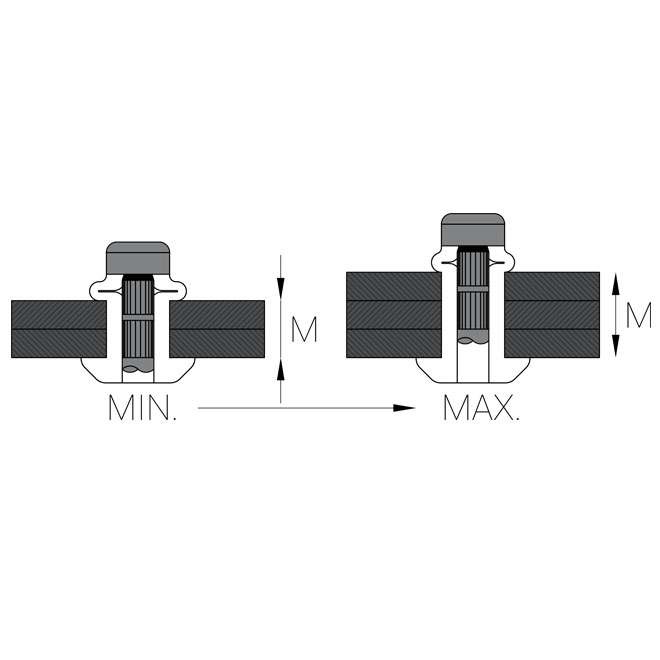 Structurele popnagel 6.4 x 14.5mm met bolkop en een klembereik van 6.8 - 8.8mm. De body en trekpen zijn gemaakt van RVS A2. Structurele popnagels van het type H worden gebruikt om bijvoorbeeld plaatmaterialen aan elkaar te bevestigen. Een structurele popnagel van het type H is steviger dan een standaard popnagel. De trekpen blijft op dubbele wijze mechanisch geborgd in de body. Hierdoor ontstaat een grote vibratieresistentie verbinding. Tevens ontstaat er bij plaatsing een grote bolling achter het materiaal om de druk te spreiden. Blindklinknagels kunnen worden geplaatst met een accu popnageltang, pneumatische popnageltang of een handmatige popnageltang.
