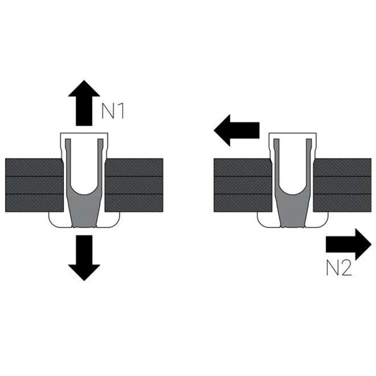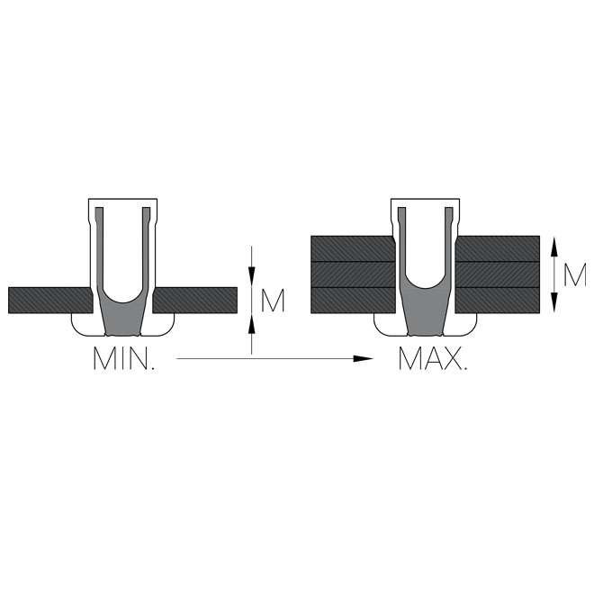 Structurele popnagel 4.8 x 10.0mm met bolkop en een klembereik van 1.6 - 6.9mm. De body en trekpen zijn gemaakt van aluminium. Structurele popnagels van het type M worden gebruikt om bijvoorbeeld plaatmaterialen aan elkaar te bevestigen in de zwaardere industrie zoals bijvoorbeeld carrosseriebouw en voertuigbouw. Een structurele popnagel van het type M is steviger dan een standaard popnagel. De trekpen blijft mechanisch geborgd in de body. Hierdoor ontstaat een grote vibratieresistentie en een spatwaterdichte verbinding. Juiste plaatsing van de popnagel kan visueel gecontroleerd worden. LET OP! bij plaatsing van structurele popnagels van het type M is een speciaal neusstuk nodig. Blindklinknagels kunnen worden geplaatst met een accu popnageltang, pneumatische popnageltang of een handmatige popnageltang.