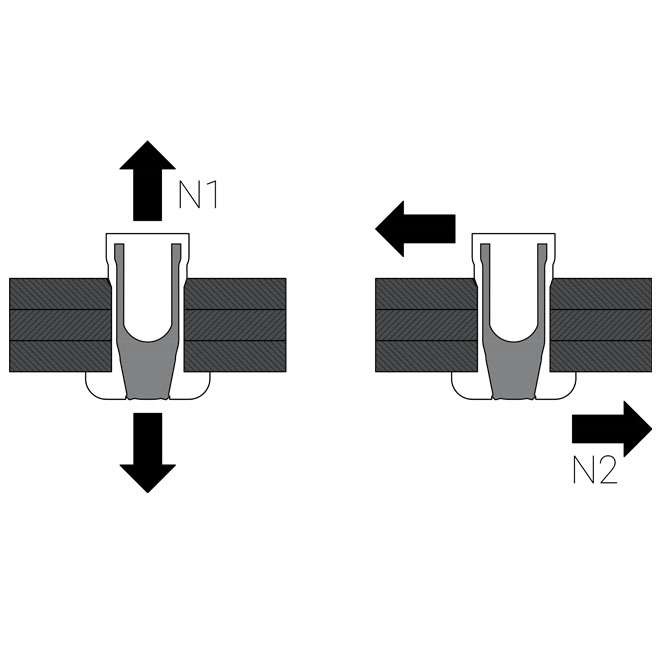 Structurele popnagel 6.4 x 14.0mm met bolkop en een klembereik van 2.0 - 9.5mm. De body en trekpen zijn gemaakt van RVS A2. Structurele popnagels van het type M worden gebruikt om bijvoorbeeld plaatmaterialen aan elkaar te bevestigen in de zwaardere industrie zoals bijvoorbeeld carrosseriebouw en voertuigbouw. Een structurele popnagel van het type M is steviger dan een standaard popnagel. De trekpen blijft mechanisch geborgd in de body. Hierdoor ontstaat een grote vibratieresistentie en een spatwaterdichte verbinding. Juiste plaatsing van de popnagel kan visueel gecontroleerd worden. LET OP! bij plaatsing van structurele popnagels van het type M is een speciaal neusstuk nodig. Blindklinknagels kunnen worden geplaatst met een accu popnageltang, pneumatische popnageltang of een handmatige popnageltang.