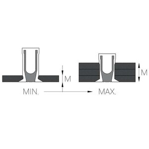 Structurele popnagel 6.4 x 16.0mm met verzonken kop en een klembereik van 3.2 - 12.1mm. De body en trekpen zijn gemaakt van staal. Structurele popnagels van het type M worden gebruikt om bijvoorbeeld plaatmaterialen aan elkaar te bevestigen in de zwaardere industrie zoals bijvoorbeeld carrosseriebouw en voertuigbouw. Een structurele popnagel van het type M is steviger dan een standaard popnagel. De trekpen blijft mechanisch geborgd in de body. Hierdoor ontstaat een grote vibratieresistentie en een spatwaterdichte verbinding. Juiste plaatsing van de popnagel kan visueel gecontroleerd worden. LET OP! bij plaatsing van structurele popnagels van het type M is een speciaal neusstuk nodig. Blindklinknagels kunnen worden geplaatst met een accu popnageltang, pneumatische popnageltang of een handmatige popnageltang.