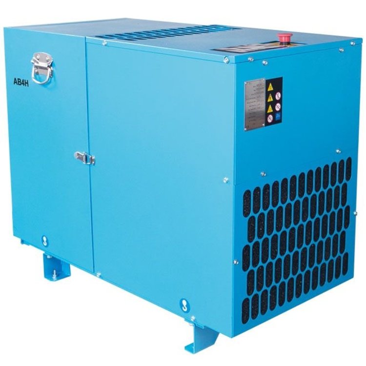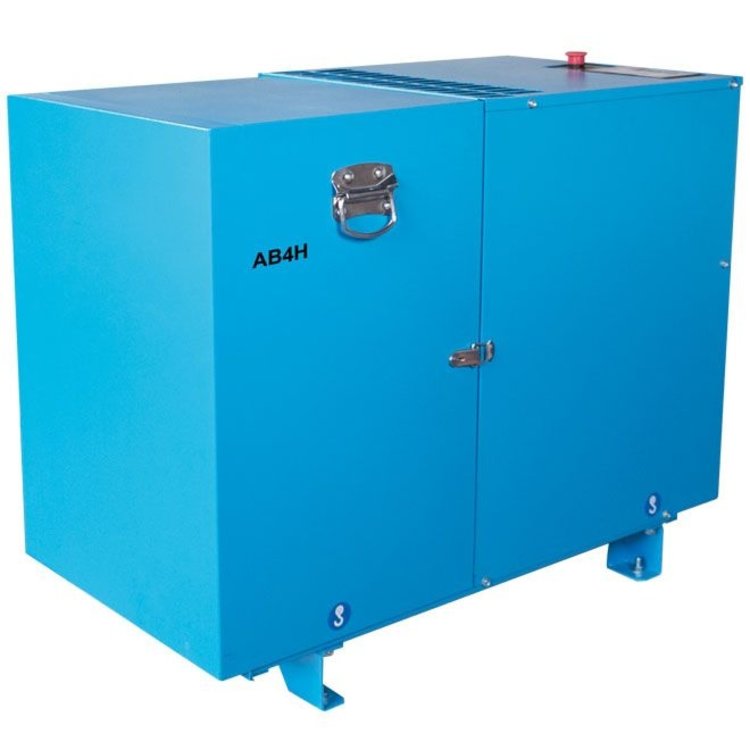 Schottencompressor 5.5 kW met een effectieve opbrengst van 770 liter per minuut. Een schottencompressor is een simpele en betrouwbare techniek. De elektromotor is in lijn verbonden met de rotor waarin schotten zijn geplaatst. Wanneer de rotor draait worden de schotten naar buiten geduwd tegen het huis aan. Doordat de rotor excentrisch in het huis is geplaatst worden de kamers tussen de schotten verkleind tijdens draaien. Hierdoor wordt er druk opgebouwd. De olie zorgt voor afdichting, smering en koeling. Door de lineaire belasting is er geen zijdelingse belasting op de lagering. Dit zorgt ervoor dat er geen speling is op de draaiende delen. Het onderhoud van een schottencompressor blijft beperkt tot het vervangen van filters en olie. Een schottencompressor is geluidsarm en kan indien juist onderhouden meer dan 70.000 uur draaien.