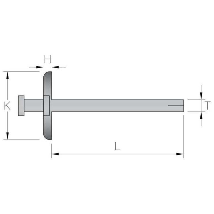 Slagnagel 4.8 x 20.0mm met extra grote bolkop en een klembereik van 16.0 - 18.0mm. De body is gemaakt van aluminium en de slagpen van RVS A2. Slagnagels zijn geschikt om bijvoorbeeld profielen en isolatie aan te brengen op constructiematerialen. Slagnagels kunnen gezet worden met een hamer. Door de pen in de body te slaan wordt de body uitgerekt en ontstaat een goede stevige verbinding.