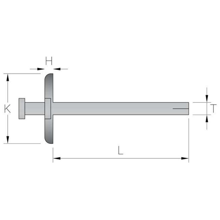 Slagnagel 4.8 x 35.0mm met extra grote bolkop en een klembereik van 31.0 - 33.0mm. De body is gemaakt van aluminium en de slagpen van RVS A2. Slagnagels zijn geschikt om bijvoorbeeld profielen en isolatie aan te brengen op constructiematerialen. Slagnagels kunnen gezet worden met een hamer. Door de pen in de body te slaan wordt de body uitgerekt en ontstaat een goede stevige verbinding.