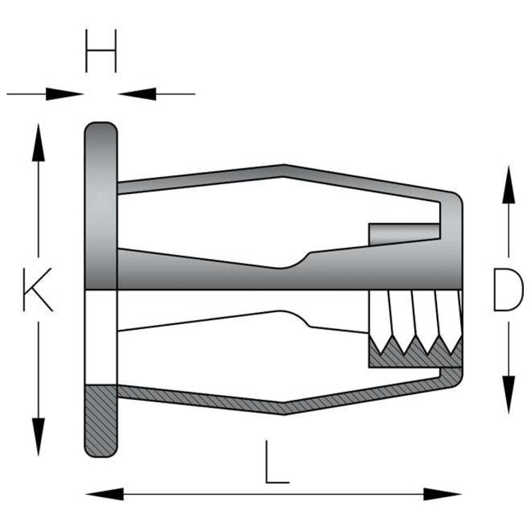 Type blindklinkmoer: Spreidmoer cilindrische kop JACK-NUT