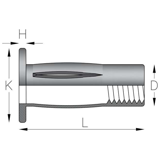 Type blindklinkmoer: Spreidmoer cilindrische kopPRE-BULBED