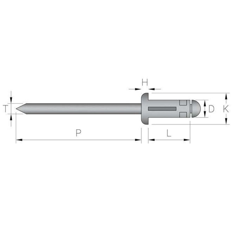 Spreid popnagel 4.8 x 20.5mm met bolkop en een klembereik van 3.0 - 9.0mm. De body en trekpen zijn gemaakt van aluminium. Spreid blindklinknagels zijn uitstekend geschikt voor zeer zachte en kwetsbare materialen. Achter het materiaal wordt een ‘’paraplu’’ gezet voor een goede drukverspreiding. Blindklinknagels kunnen worden geplaatst met een accu popnageltang, pneumatische popnageltang of een handmatige popnageltang.