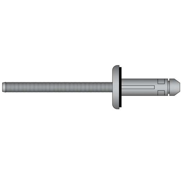 Structurele spreidnagel 5.2 x 17.5mm met bolkop en O-ring en een klembereik van 1.3 - 4.8mm. De body en trekpen zijn gemaakt van aluminium. Structurele spreid popnagels worden gebruikt om bijvoorbeeld plaatmaterialen aan elkaar te verbinden. Achter het materiaal wordt een ‘’paraplu’’ gezet voor een goede drukverspreiding. Bij gebruik in combinatie met de neopreen O-ring ontstaat er een waterdichte verbinding. De trekpen blijft mechanisch geborgd in de body. LET OP! bij plaatsing van structurele spreid popnagels van het type M is een speciaal neusstuk nodig. Blindklinknagels kunnen worden geplaatst met een accu popnageltang, pneumatische popnageltang of een handmatige popnageltang.