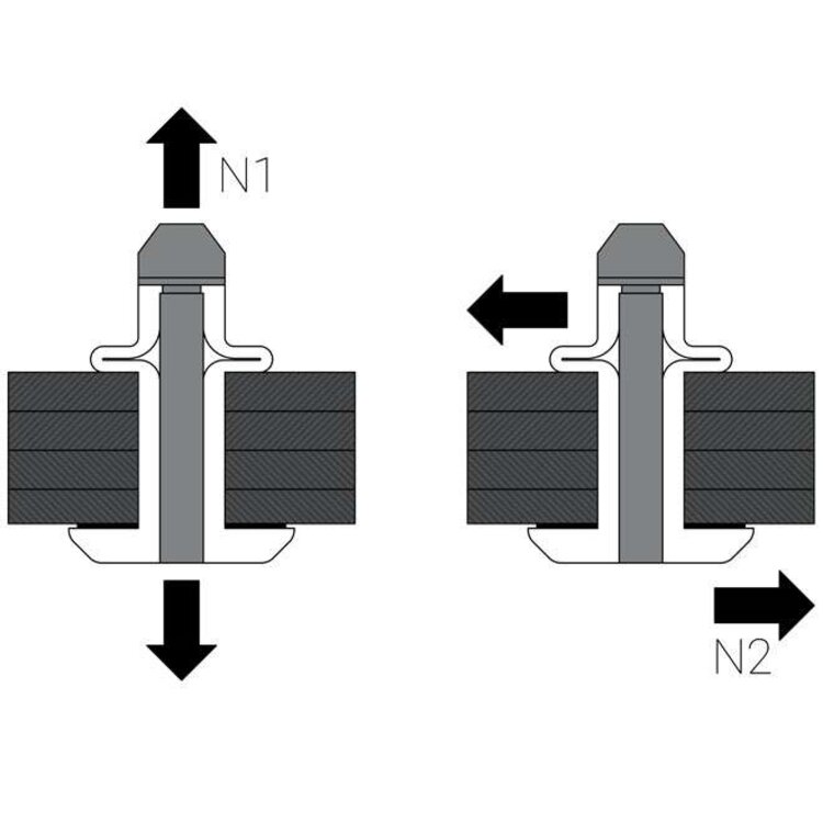 Structurele spreidnagel 5.2 x 19.1mm met bolkop en O-ring en een klembereik van 1.6 - 6.4mm. De body en trekpen zijn gemaakt van aluminium. Structurele spreid popnagels worden gebruikt om bijvoorbeeld plaatmaterialen aan elkaar te verbinden. Achter het materiaal wordt een ‘’paraplu’’ gezet voor een goede drukverspreiding. Bij gebruik in combinatie met de neopreen O-ring ontstaat er een waterdichte verbinding. De trekpen blijft mechanisch geborgd in de body. LET OP! bij plaatsing van structurele spreid popnagels van het type M is een speciaal neusstuk nodig. Blindklinknagels kunnen worden geplaatst met een accu popnageltang, pneumatische popnageltang of een handmatige popnageltang.