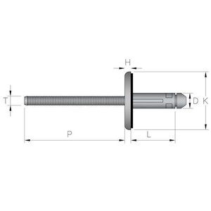 Structurele spreidnagel 7.5 x 28.0mm met grote bolkop en een klembereik van 1.1 - 9.5mm. De body en trekpen zijn gemaakt van aluminium. Structurele spreid popnagels worden gebruikt om bijvoorbeeld plaatmaterialen aan elkaar te verbinden. Achter het materiaal wordt een ‘’paraplu’’ gezet voor een goede drukverspreiding. Bij gebruik in combinatie met de neopreen O-ring ontstaat er een waterdichte verbinding. De trekpen blijft mechanisch geborgd in de body. LET OP! bij plaatsing van structurele spreid popnagels van het type M is een speciaal neusstuk nodig. Blindklinknagels kunnen worden geplaatst met een accu popnageltang, pneumatische popnageltang of een handmatige popnageltang.